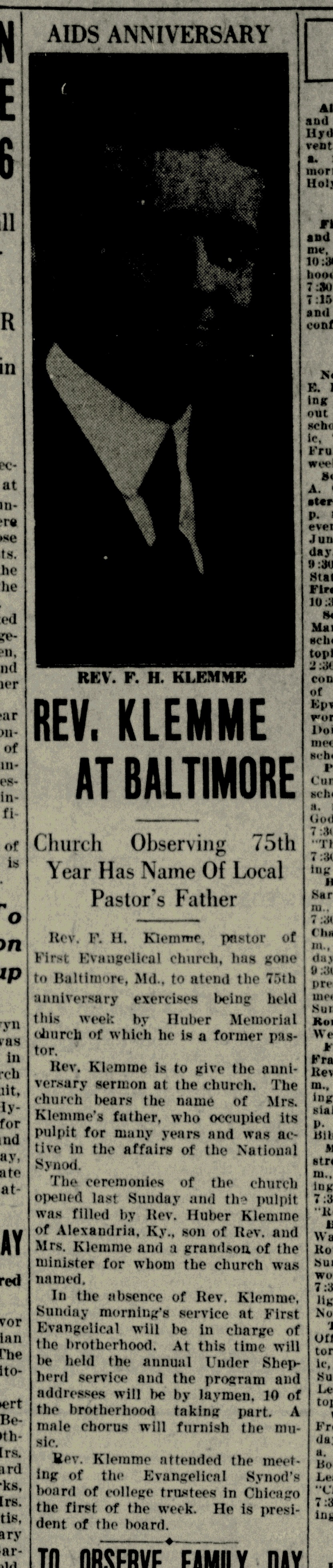 - Rev. Frederick Henry Klemme+ b. 24 May 1884, d. 13 Mar 1974