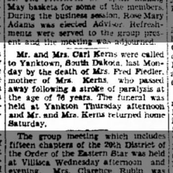 - [S250] U.S. Federal Census 1930 U.S. Federal Census, by Ancestry.com, Year: 1930; Census Place: Yankton, Yankton, South Dakota; Roll: 2232; Page: 10A; Enumeration District: 21; Image: 929.0.