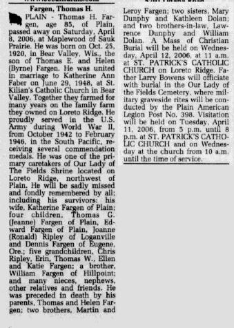 - Thomas Henry Fargen+ b. 25 Oct 1920, d. 8 Apr 2006