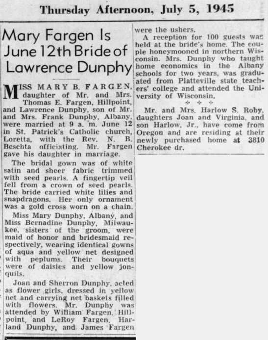 - Mary Bernadine Fargen b. 2 Apr 1919, d. 12 Jun 1994
