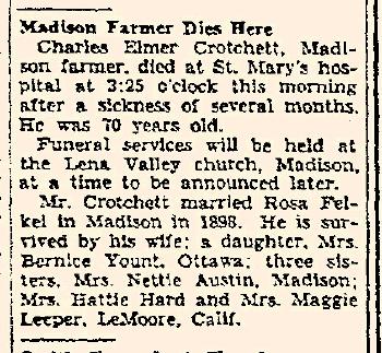 Child of Charles Elmer Crotchett and Rosa Dell Felkel