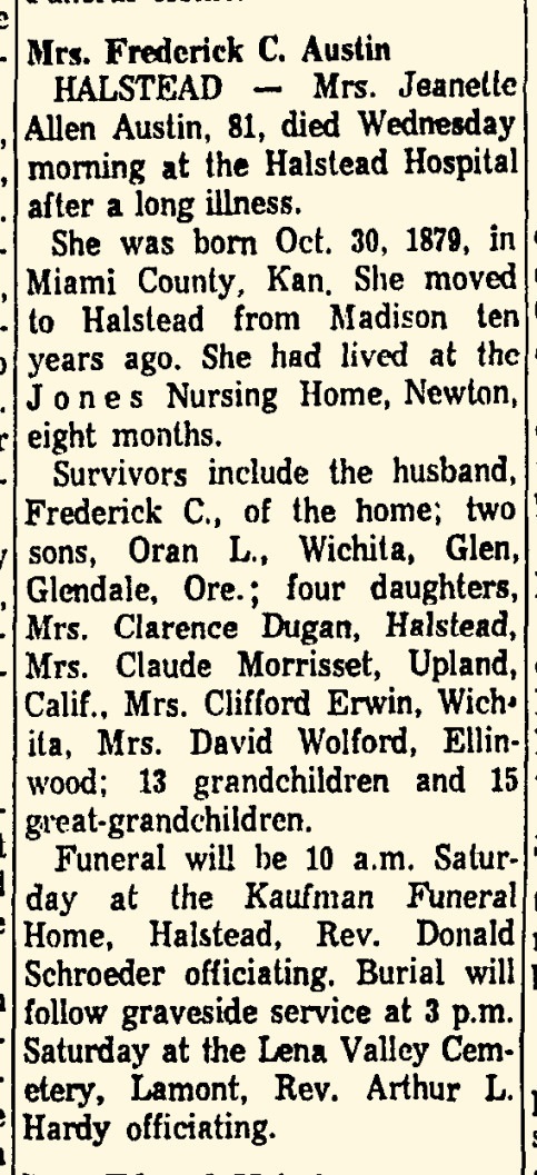 - Glenn Austin+ b. 17 Apr 1908, d. 2 Apr 1976