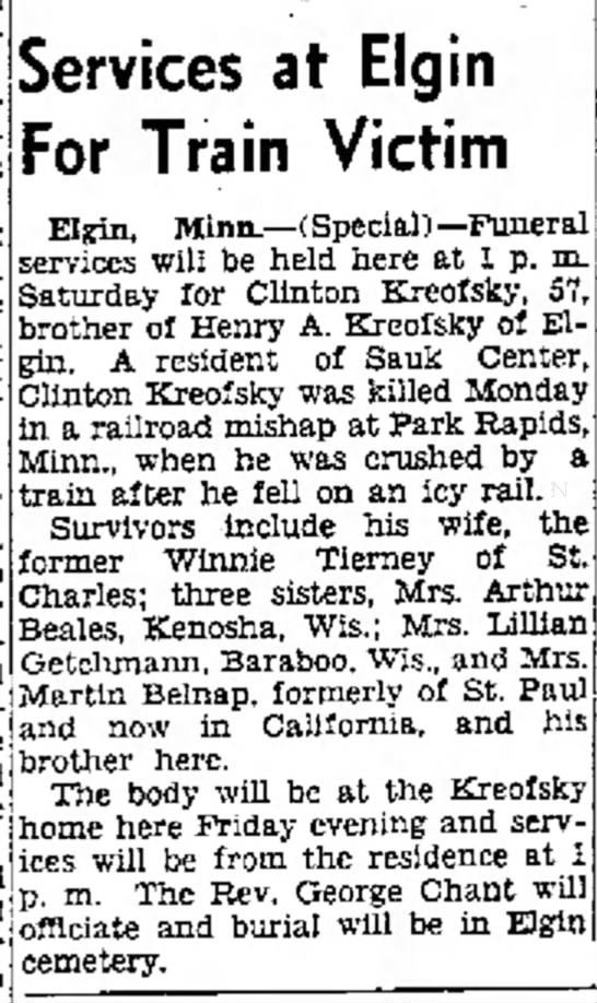 - Clinton Clarence Kreofsky b. 16 Jun 1891, d. 28 Feb 1948