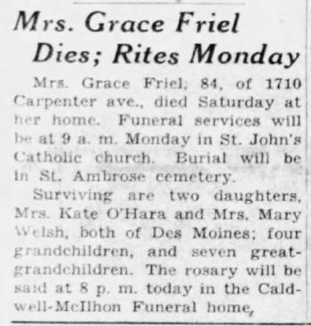 - Catherine Agnes Friel+ b. 18 Dec 1885, d. May 1968