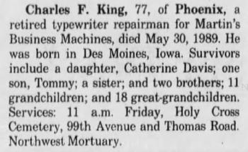 | Father* | Charles Frances King b. 26 Aug 1911, d. 30 May 1989 |