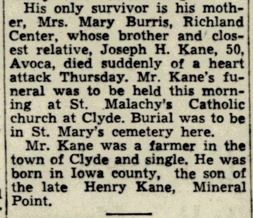 - Joseph Henry Kane b. 21 Sep 1896, d. 9 Dec 1948