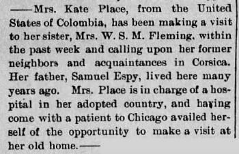| Father* | Samuel C. Espy b. 1812, d. 28 Jan 1887 |