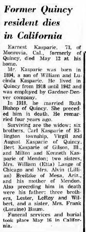 - Glenn Delbert Kasparie b. 3 Jan 1927, d. 28 Mar 2001