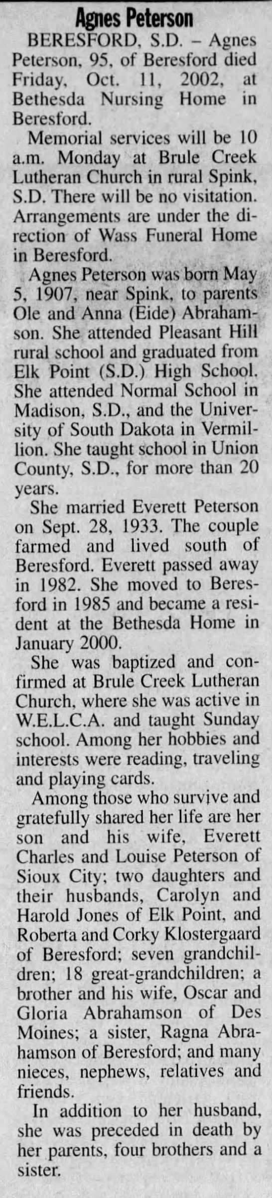 - [S184] Beresford Republic Newspaper, Vol. 107, 2000, Jun 15.