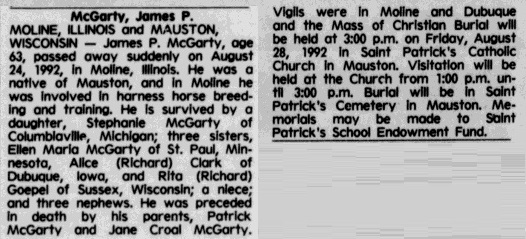 - James Patrick McGarty+ b. 25 Apr 1929, d. 24 Aug 1992
