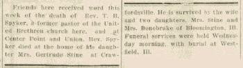- Reverand Lorin Spyker Stine b. 25 Jun 1905, d. 15 Oct 1958