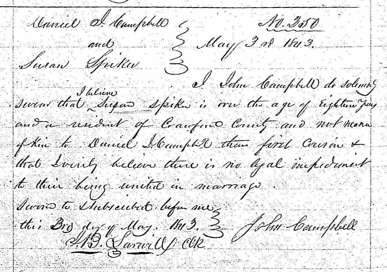 - [S249] U.S. Federal Census 1850 U.S. Federal Census, by Ancestry.com, Year: 1850; Census Place: District 11, Marion, Illinois; Roll: M432_119; Page: 62A; Image: 650.