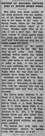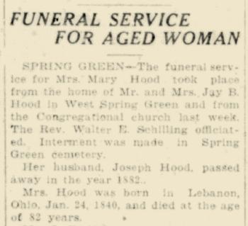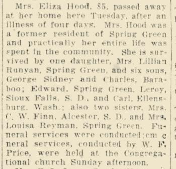 - [S243] U.S. Federal Census 1920 U.S. Federal Census, by Ancestry.com, Year: 1920; Census Place: Spring Green, Sauk, Wisconsin; Roll: T625_2015; Page: 13B; Enumeration District: 178; Image: 473.