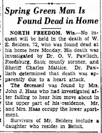 - [S250] U.S. Federal Census 1930 U.S. Federal Census, by Ancestry.com, Year: 1930; Census Place: Spring Green, Sauk, Wisconsin; Roll: 2609; Page: 6A; Enumeration District: 0035; Image: 452.0; FHL microfilm: 2342343.