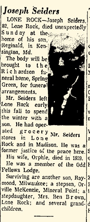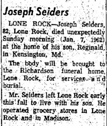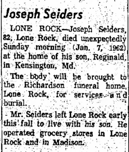 - Joseph Harry Seiders+ b. 15 Mar 1877, d. 7 Jan 1962