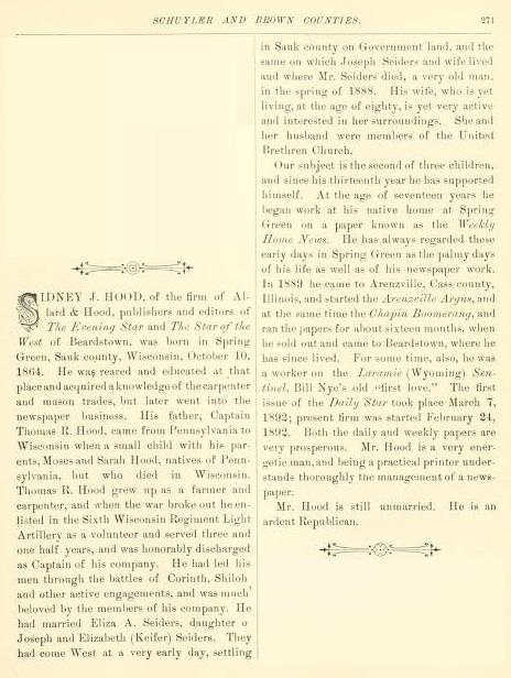 - Sidney J. Hood+ b. 10 Oct 1864, d. 1 Feb 1932