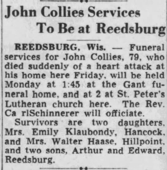 - Edward Collies b. 17 Apr 1895, d. 16 Feb 1965