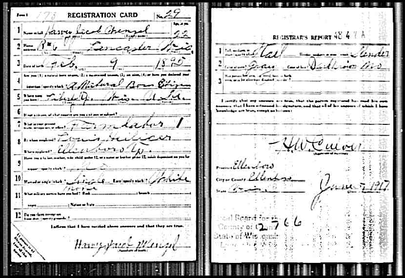- Harvey Jacob Wenzel b. 9 Feb 1895, d. Dec 1975
