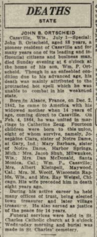 | Father* | John Baptists Ortscheid b. 2 Dec 1842, d. 7 Jun 1931 |