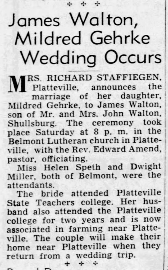 - Mildred M. Gehrke b. 2 Jul 1924, d. 12 Nov 1990