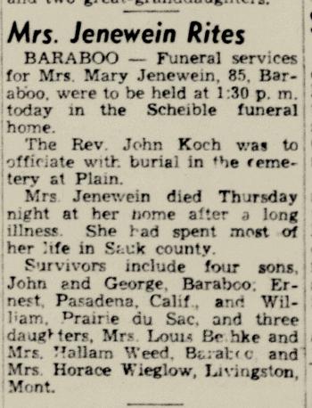 - Lucinda Jenewein b. c 1909, d. 9 Oct 1983