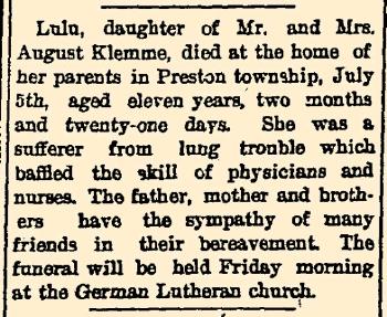 Child of Alfred Allen Klemme and Elsa Emma Kehrer