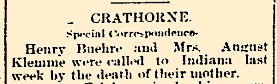 - Heinrich August Buehre b. 6 Mar 1889, d. 9 Aug 1889