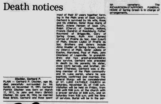 | Father* | John Baptist Dischler b. 6 Jul 1887, d. Mar 1970 |