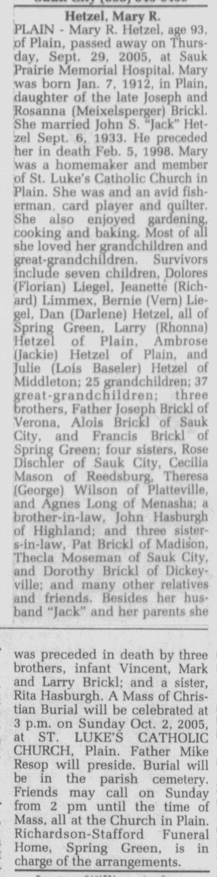 Child of Mary Rosanna Brickl and John Stephen Hetzel