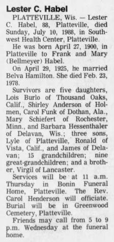 - Lester Clarence Nelson Habel+ b. 27 Apr 1899, d. 10 Jul 1988