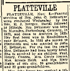 - Wilhelmina Bellmyer+ b. 3 Oct 1860, d. 5 Dec 1943