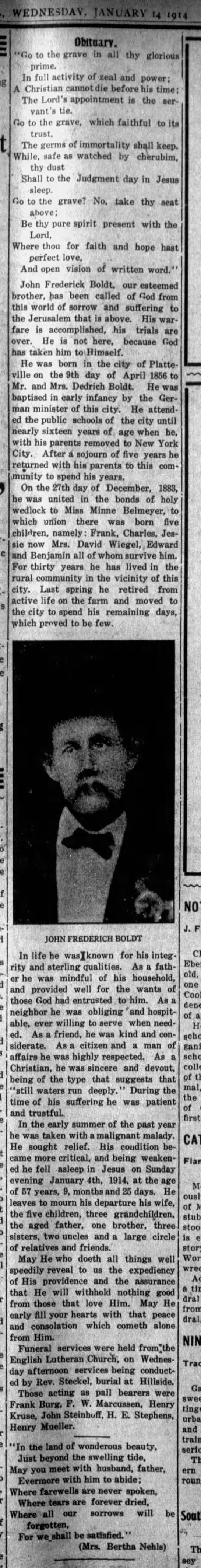- Frank J. Boldt+ b. Sep 1884, d. 1983