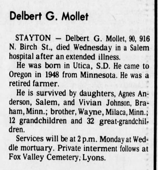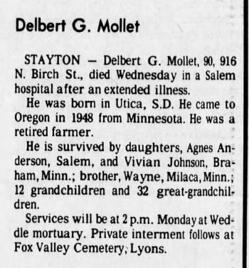 - Wayne Delbert Mollet+ b. 4 Feb 1924, d. 10 Dec 2006