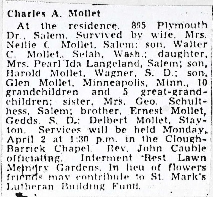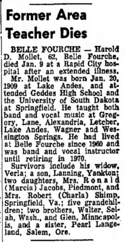 - Harold D. Mollet+ b. 20 Jan 1909, d. 9 Jan 1972