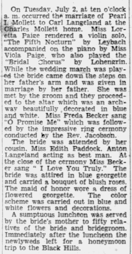 | Father* | Lars K. Langeland b. May 1857, d. 31 Dec 1933 |