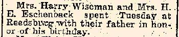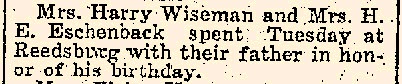 | Father* | Henry Ernest Eschenbach b. May 1886, d. 1954 |