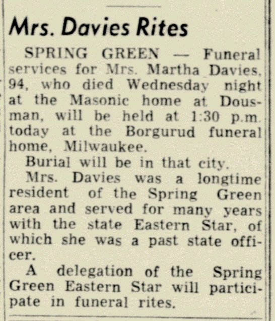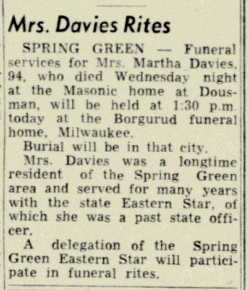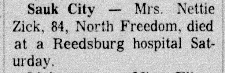 - [S180] Wisconsin Sauk Co Cemetery Records Vol 6, pg 91.