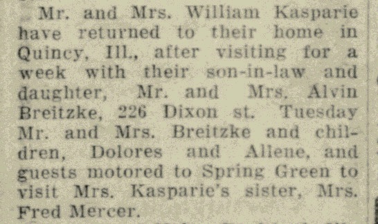- [S373] U.S. Federal Census 1940 U.S. Federal Census, by Ancestry.com, Year: 1940; Census Place: Honey Creek, Sauk, Wisconsin; Roll: T627_4523; Page: 9B; Enumeration District: 56-17.