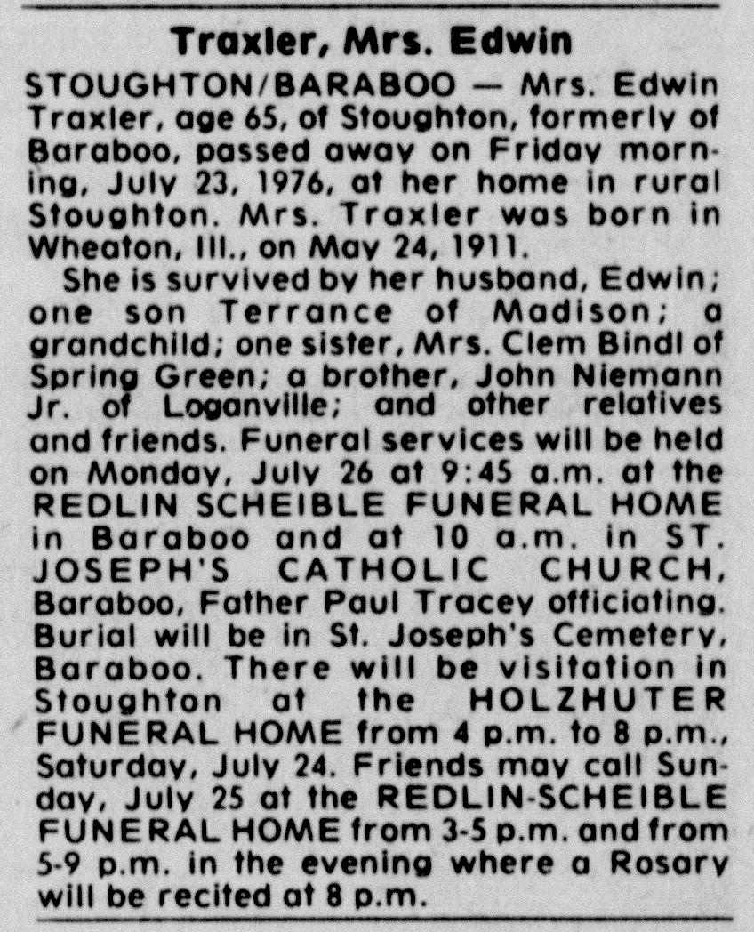 Child of Ruth Niemann and Edwin Leroy Traxler