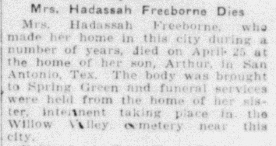 - Lorene A. Freeborn b. 16 Aug 1878, d. 13 Sep 1968