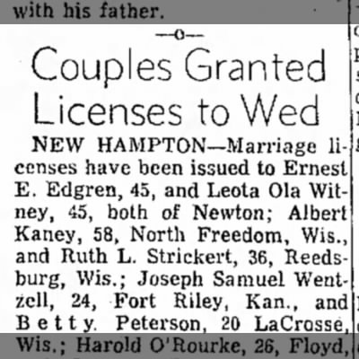 - [S373] U.S. Federal Census 1940 U.S. Federal Census, by Ancestry.com, Year: 1940; Census Place: Westport, Dane, Wisconsin; Roll: T627_4471; Page: 3A; Enumeration District: 13-106.