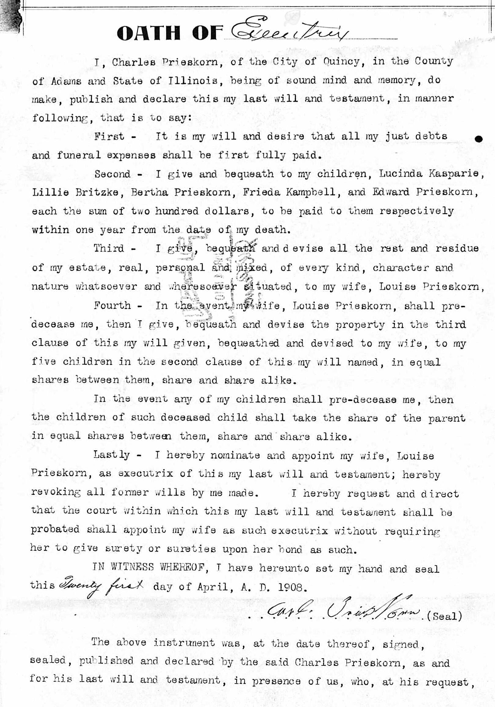 | Father* | Charles G. Prieskorn b. 23 Sep 1846, d. 13 Feb 1910 |