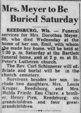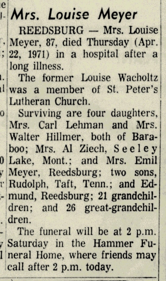 - Mildred Rau Meyer b. 6 Oct 1912, d. Aug 1987