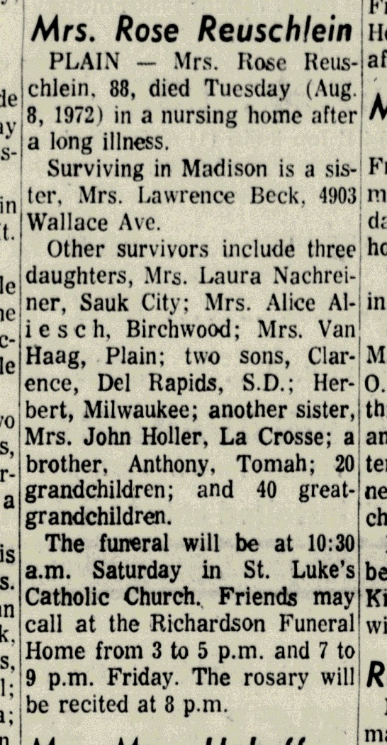 - Clarence Henry Reuschlein b. 2 May 1904, d. 21 Mar 1995