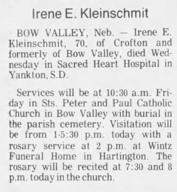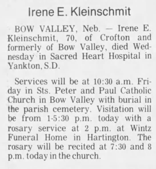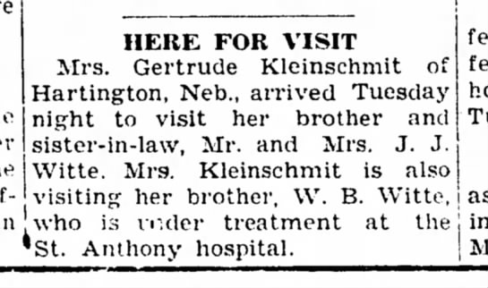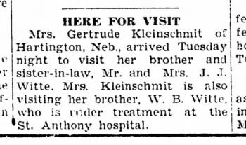 - Lavina Gertrude Kleinschmit+ b. 22 Dec 1902, d. 27 May 1967