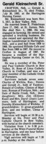 - Gerald Anthony Kleinschmit Sr.+ b. 5 Nov 1917, d. 30 Jul 1993