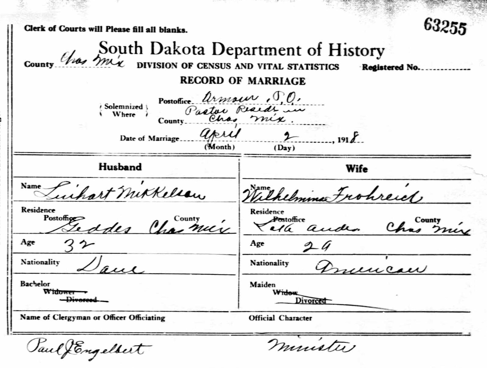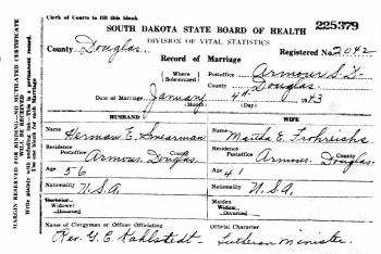 - [S342] South Dakota, South Dakota Marriage Certificates, 1905-1949, Spouse: Chris Lorson.