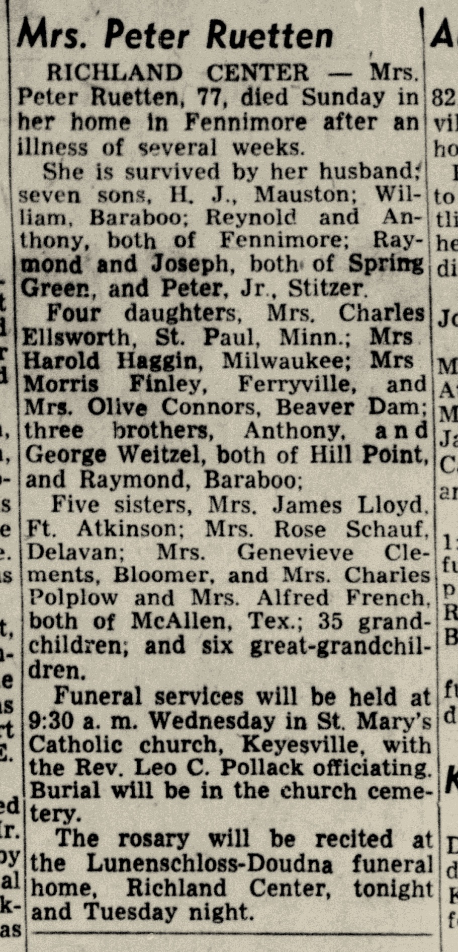 - Veronica Ruetten b. 14 Feb 1900, d. 9 Oct 1976