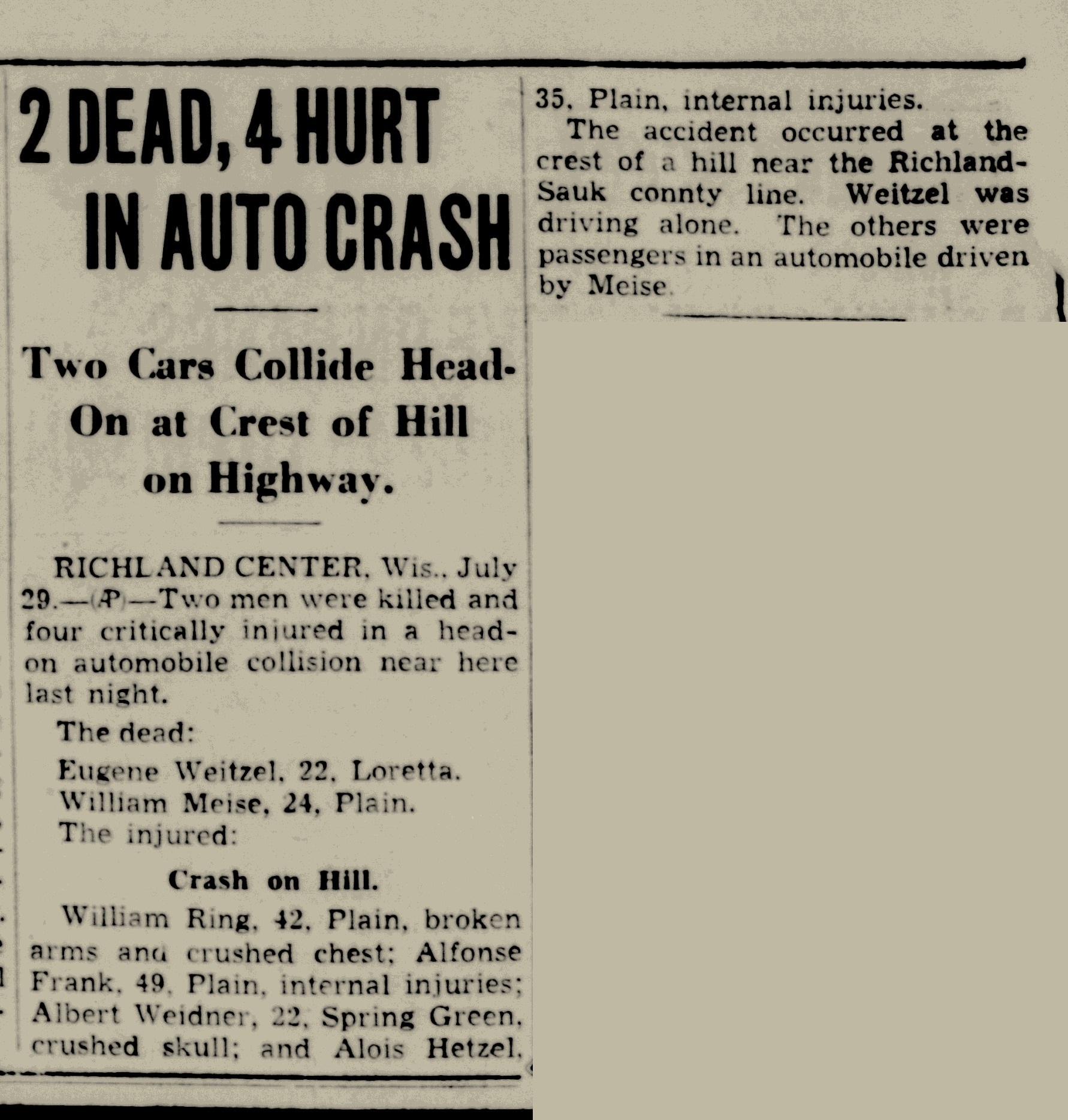 - Eugene J. Weitzel b. 1916, d. Jul 1937
