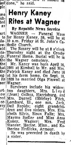 - [S267] South Dakota Cemetery Records, by Ancestry.com, Lot 48. Grave 6&7.
